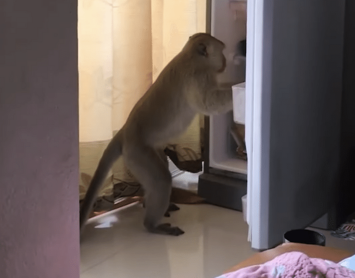 冷蔵庫を開けるだと!? 賢すぎるサルの行動にびっくり。