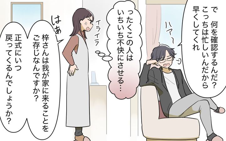 夫の拓人、娘の綾音、義母と4人で暮らす響子。ある日、義母から義兄とその息子も一緒に暮らすことになったと聞かされ、唖然。拓人が響子に相談せずに勝手に許可していたのでした。そして響子の反対も虚しく、義兄たちとの同居が始まり…