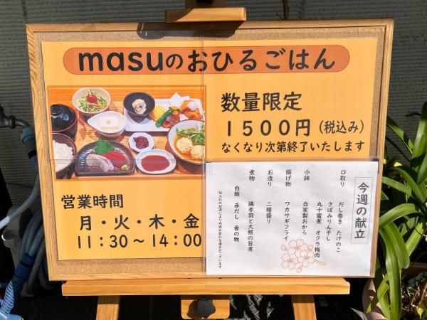<箕面発>こんにちは、北摂特派員のまたたびです。 本日は割烹居酒屋「お料理とお酒 masu」さんの和食ランチをご紹介します! 「おいしい和食が食べたいな〜!」と思った時、真っ先に思い浮かぶのがこのお店。 しばらくランチはお休みされていたのですが、2024年3月からランチ営業が復活しております。早速行ってみましょう〜!!