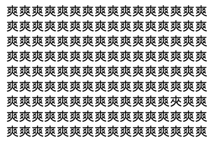画像に並んだたくさんの「爽」という漢字。 その数144個なのですが・・・、実はその中に1つ違う漢字が紛れ込んでいます!!