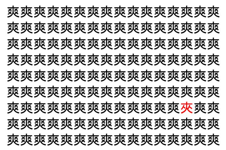 画像の中には、「爽」という漢字が縦に9行、横に16個並んでいます。 全部で144個となりますが・・・、そのうち1つは「異なる漢字」となってますよ!!