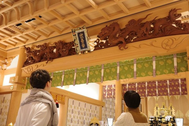 案内してくださった神職の方に伺うと、施工は竹中工務店!(社殿には欄干、御鏡に龍神さまがいらっしゃり、神様に願いを届けてくださるとのこと)   仁田 「マニアックな話ですが、今まで素晴らしい修繕をされた寺社仏閣で施工会社の名前を伺うたび、ダントツで挙がるのが竹中工務店なんです。この会社の始祖は織田信長に仕えた人で、たくさんの伝統建築を手掛けたんですよ。竹中工務店のなかには、宮大工の精鋭部隊がいるんです!」(興奮気味)   ちなみに、唐招提寺金堂、平城京、寒川神社、熱田神社などの修復も担当しています。