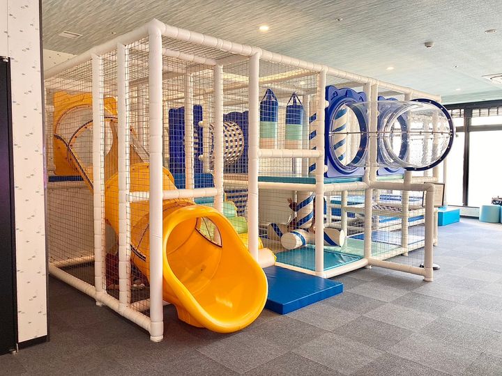 キッズスペースが充実していて、トランポリンや遊具、知育玩具や大型ブロックなどがあり、子どもたちは退屈せず、親は休憩できて最高でした。