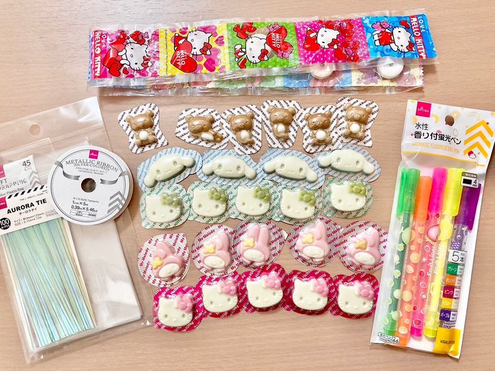 香り付きペンや大好きなサンリオのチョコを詰め込んだプチプレゼント