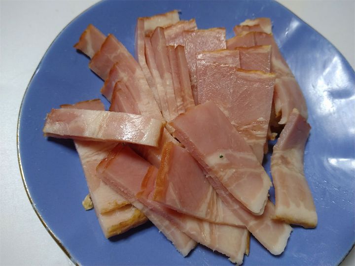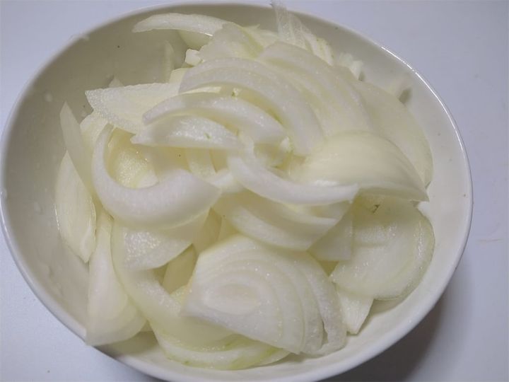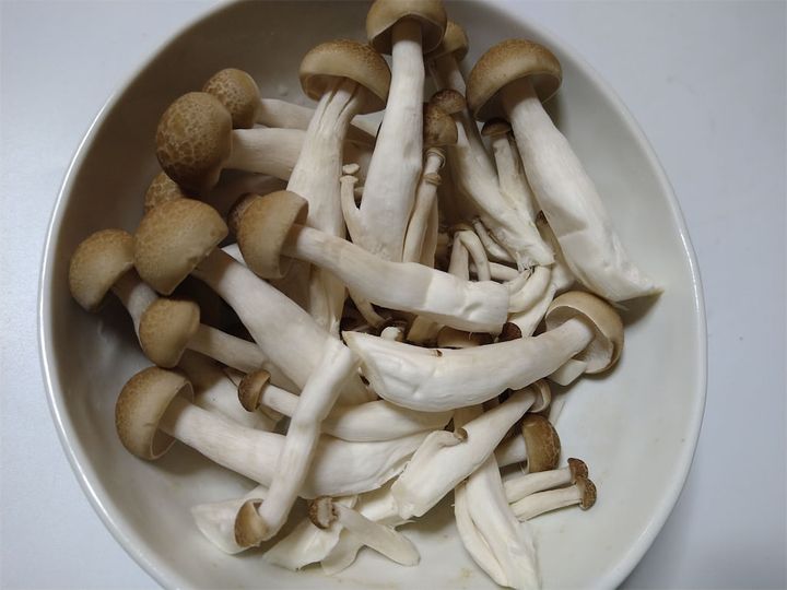 2.玉ねぎは縦半分に切り、薄くスライスします。しめじは軸を落として小房に分け、ベーコンは1cm幅に切ります。