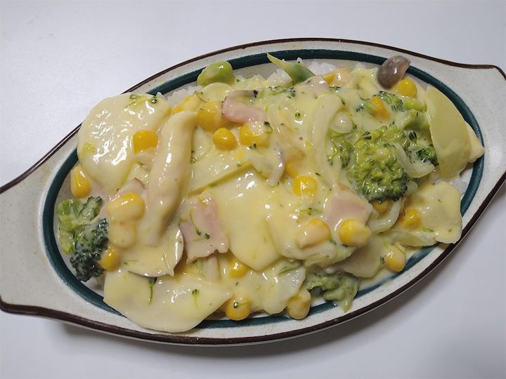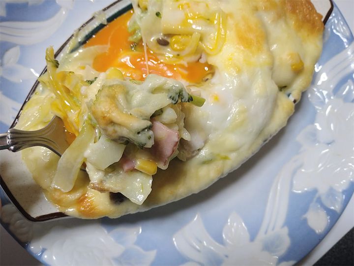 ゴロッと野菜に卵トロっ♡「コーンクリームドリア」