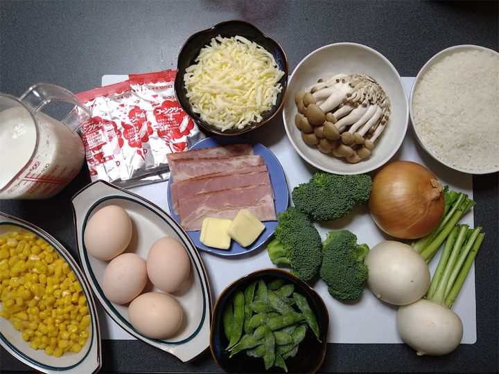 こんにちは!鹿児島県でとうもろこし・西洋野菜を栽培する農家の瀬川知香です。春とはいえ、まだまだ肌寒い日もありますね。今回は、そんな日にピッタリの熱々ドリアレシピをご紹介します。ドリアというと、ホワイトソースを作るのが面倒と思われがちですが、このレシピにホワイトソースは不要!その代わりに、なんと“コーンスープの素“を使うんです。牛乳に溶かしてご飯にかけるだけでOK。気兼ねなくサッと作れますのでオススメです♪