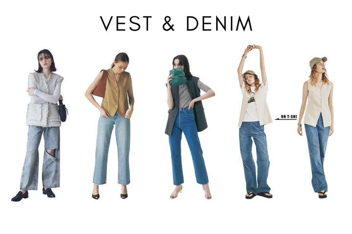 ≫「コンサバなベストとカジュアルなデニム」相反するテイストだからこそしっくりくる、組み合わせ実例