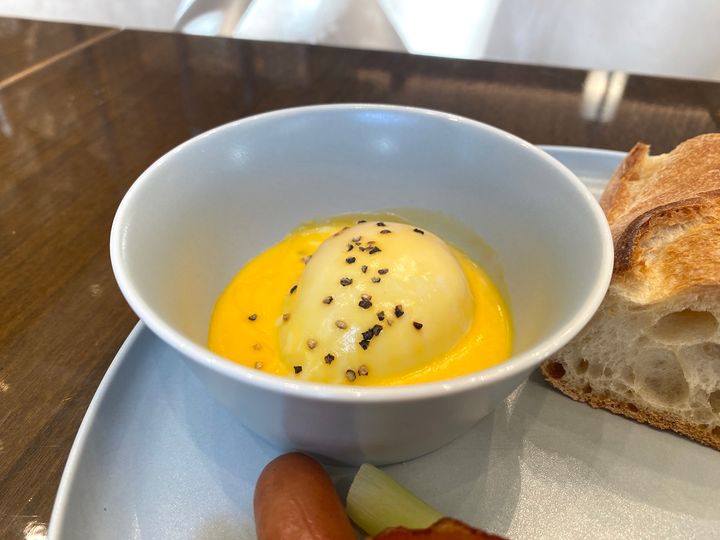 朝食といえば卵料理。「スクランブルエッグ」または「エッグベネディクト」のどちらかを楽しめます。筆者は「エッグベネディクト」をチョイスしました!ポーチドエッグをオランデーズソースと絡ませてひと口。タマゴとマヨネーズのまろやかさにコショウがピリッと利いていてなんとも不思議でおいしい味わいになっています。イングリッシュマフィンと一緒に食べることが多いですが、セレクロワでは単品での提供。そのまま食べるもよし、バケットやベーコン、ソーセージなどと合わせるもよし、オリジナルの楽しみ方を見つけてみて。