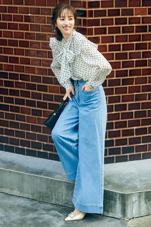 カジュアル初心者はこれやって!「ワイドデニム×リボンブラウス」で作る簡単甘辛コーデ