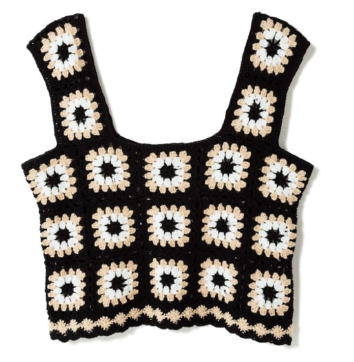 レトロなムードを醸すクロシェベスト。落ち着いた配色で甘くなりすぎない。¥10,450(ローガン ニッティング ミルズ×ビューティー&ユース/ビューティー&ユース ユナイテッドアローズ 丸の内店 TEL:03・6212・1500)