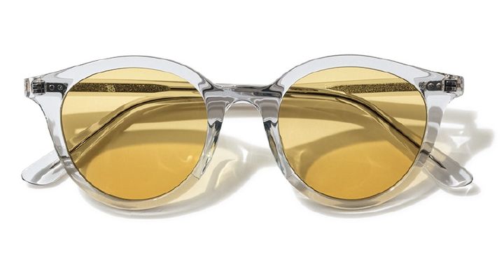 イエローのレンズとクリアフレームの組み合わせが涼しげなサングラス。丸みを帯びたボストン型で合わせやすさも抜群。UVカット率99%で夏のレジャーにも。¥25,300(RHC/RHC ロンハーマン TEL:0120・008・752)