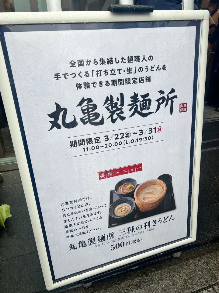 現在、24年3月22日〜3月31日までの期間限定で、東京神保町にて「丸亀製麺所」が開店中。