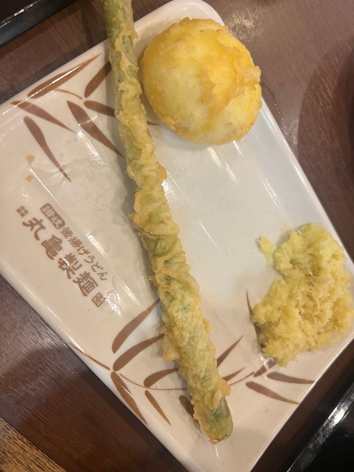 卵の天ぷらと、ホクホクしたアスパラの天ぷらも頼んじゃいました。