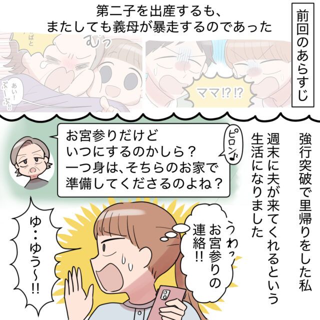 [1]義母から連絡「お宮参りはいつ?」一つ身はお下がりじゃダメですか?ますます義母に嫌われています|ママ広場マンガ