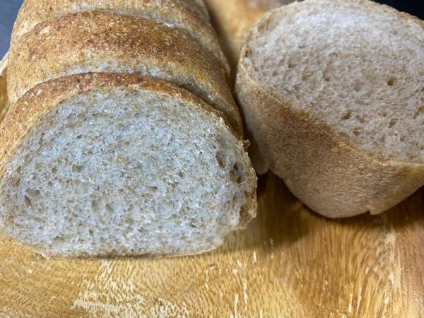 取り出す時に、どのパンもほんのり温かく、焼き上がってからまだそんなに時間がたっていないことが分かりました。これは楽しみです♪ 因みに、写真右上の2つのハード系パンは、ずっしりと、しっかりとした重みがあり、断面はこんな感じでした。↓
