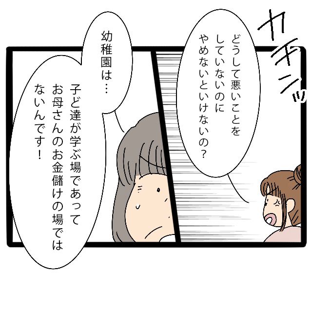 「幼稚園は子ども達が学ぶ場であって、お母さんのお金儲けの場ではないんです!」