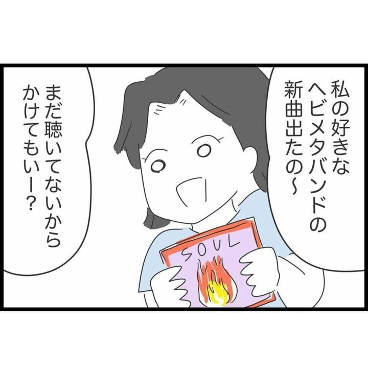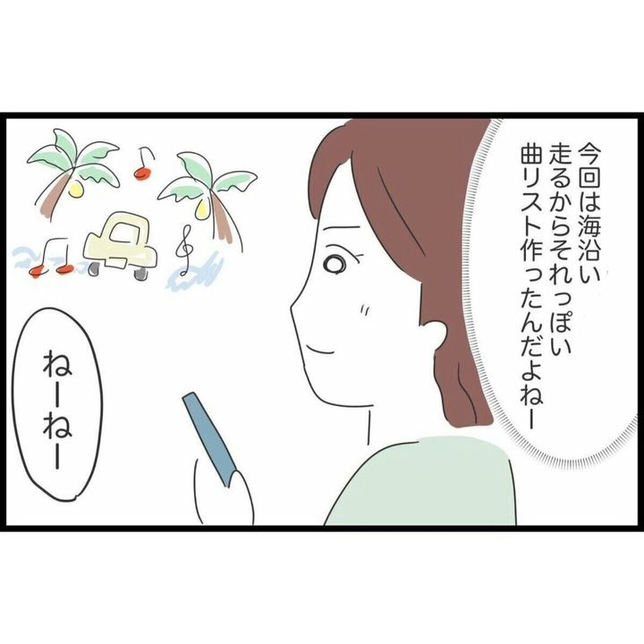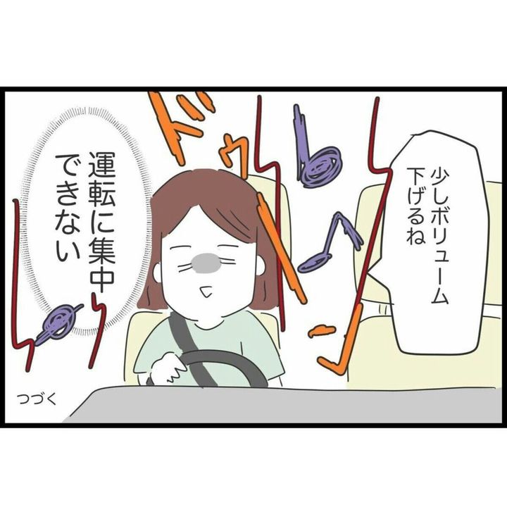 いよいよ迎えた旅行当日。友人たちを乗せ目的地へと走り出す車内で準備していた音楽を流そうとしたすみれ。そこに友人が「好きなヘビメタバンドの新曲をかけたい」と言い出します。心の中で悪態をつきながらもすみれは快諾します。しかし、いざ流してみると運転には向かないような激しい曲調…友人はノリノリで楽しそうですが、すみれは落ち着かない様子です…。