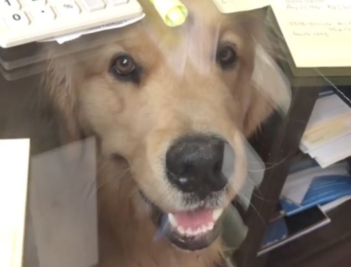 3. お仕事終わりましたか? ガラスからひょっこり可愛いワンコ。