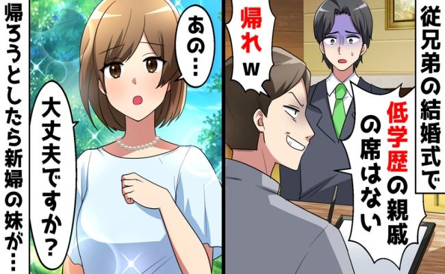 「低学歴はご祝儀を置いて帰れ!」結婚式で悪態をつく従兄弟⇒一部始終を見ていた新婦の妹が…!?