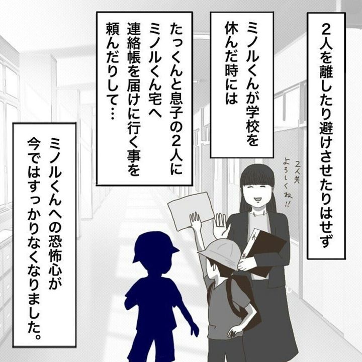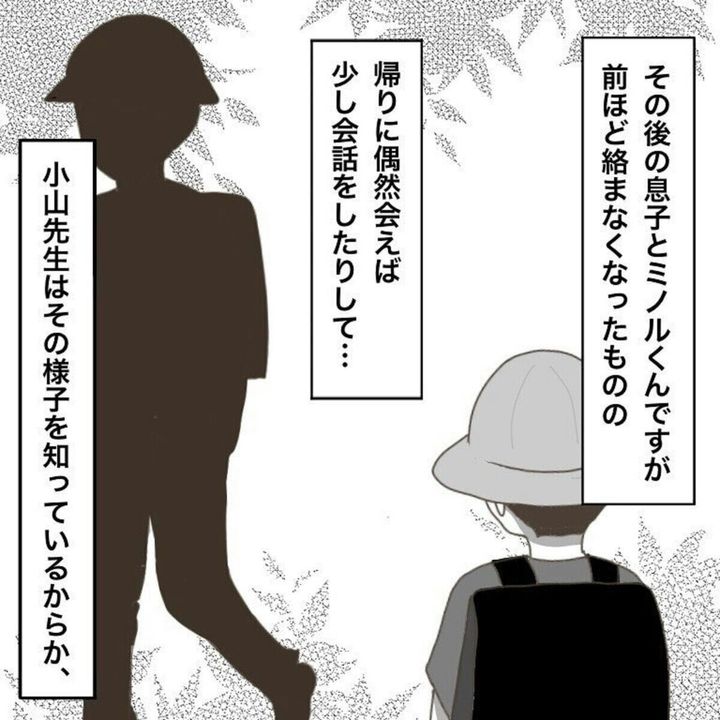 面談で先生から息子の様子を聞いた愛すべき宇宙人(@aisubekiutyu_jin)さん。先生は「このまま変わらないで成長してほしい」と、誰にも優しい気持ちを持てる息子の成長を願ってくれるのでした。その後も、ミノルくんとは偶然会うこともあるようですが、どんな関係性になったのでしょうか。『いじりといじめ』最終話をごらんください。