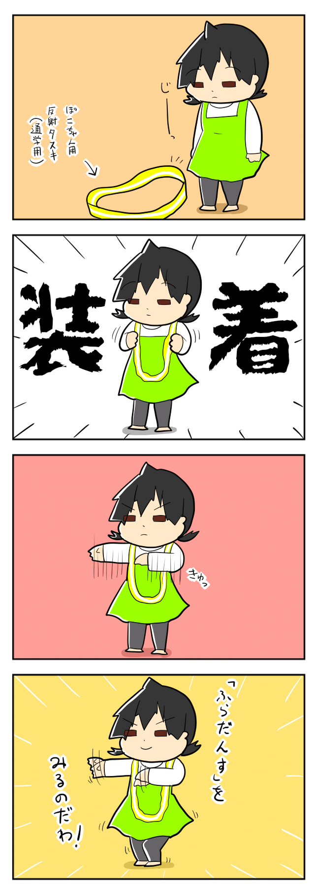 兄の反射タスキを見つけ・・え、物ボケ!?娘にかかればどんなものでもオモチャになっちゃう!|mochikoの育児マンガ