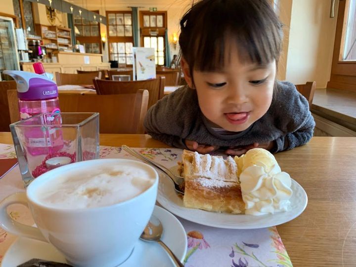 ちなみにわが家のお気に入りは、「アプフェルシュトゥルーデル(Apfelstrudel)」というドイツ版アップルパイ。サクサクの温かいパイと、バニラアイスと温かいバニラソースのコンビネーションが絶妙なんです。