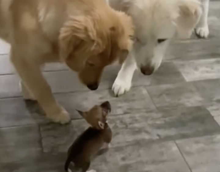 3. 態度は大型犬よりも大きい子犬だよ! おっきな犬の前でも怯まない。