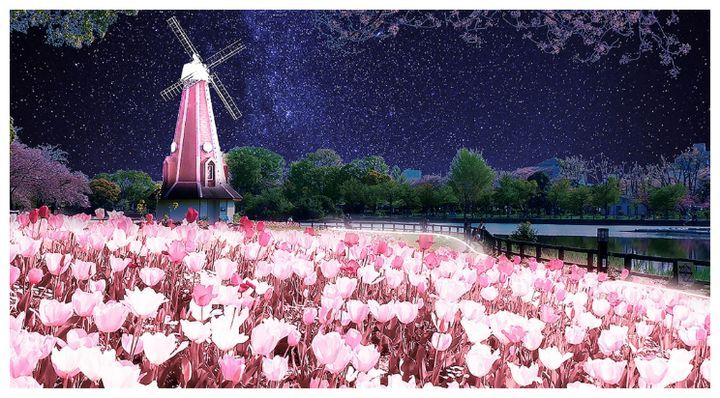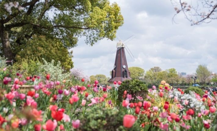 浮間公園では2024年3月22日(金)〜2024年4月21日(日)の期間で、「花と光のムーブメント」が開催されます。園内には風車を囲むように2万球のチューリップが咲きます。まるでオランダに来たかのような景色を楽しめます。