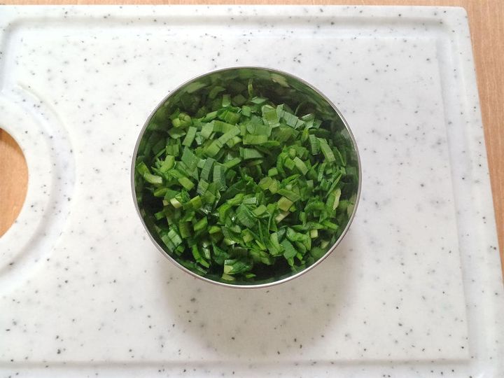 2.キャベツは芯を取り除いてみじん切りにし、塩(分量外)を適量ふりかけ軽く揉む。10分くらいおいたら、水気を固く絞る。ニラは小口切りにする。