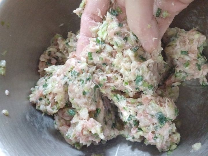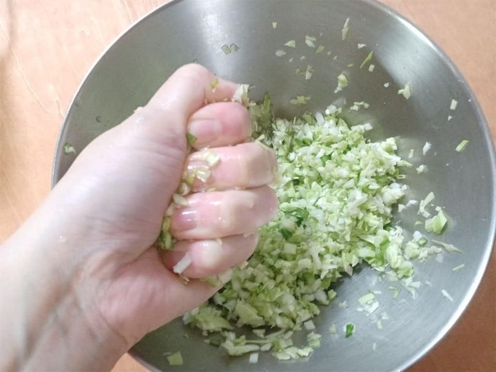 水分が残っていると肉だねが緩くなってしまうので、しっかり絞りましょう。