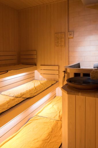 御宿 野乃といえば、温泉とサウナが人気のお宿。特に浅草別邸では、敷地内に湧く褐色の天然温泉 “黒湯” を引くほか、男女共に高温サウナを用意。ホテルのサウナでは珍しくセルフロウリュを楽しめるのも魅力です。このほかジェットバスや外気浴ができる壷湯なども用意。東京浅草で温泉気分を味わえます。