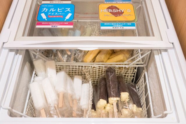 ▲15時から25時まで、湯上り処には4種類の無料のアイスキャンディーを用意