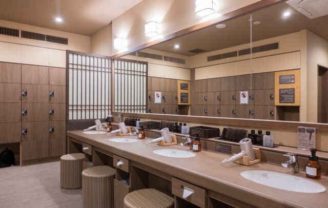 脱衣場には鍵付きのロッカーを設置。ドライヤーはパナソニックの新型プレミアムドライヤーを備えるほか、女湯にはリファのビューテックドライヤーも置かれ、使い心地を試せます。