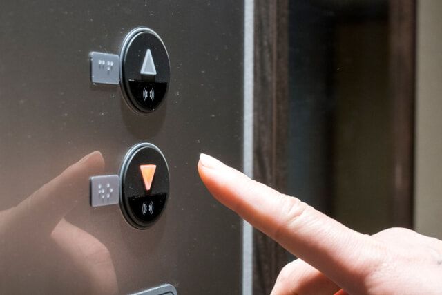 エレベーターのボタンには触ることなく、指を近づけるだけで反応します。