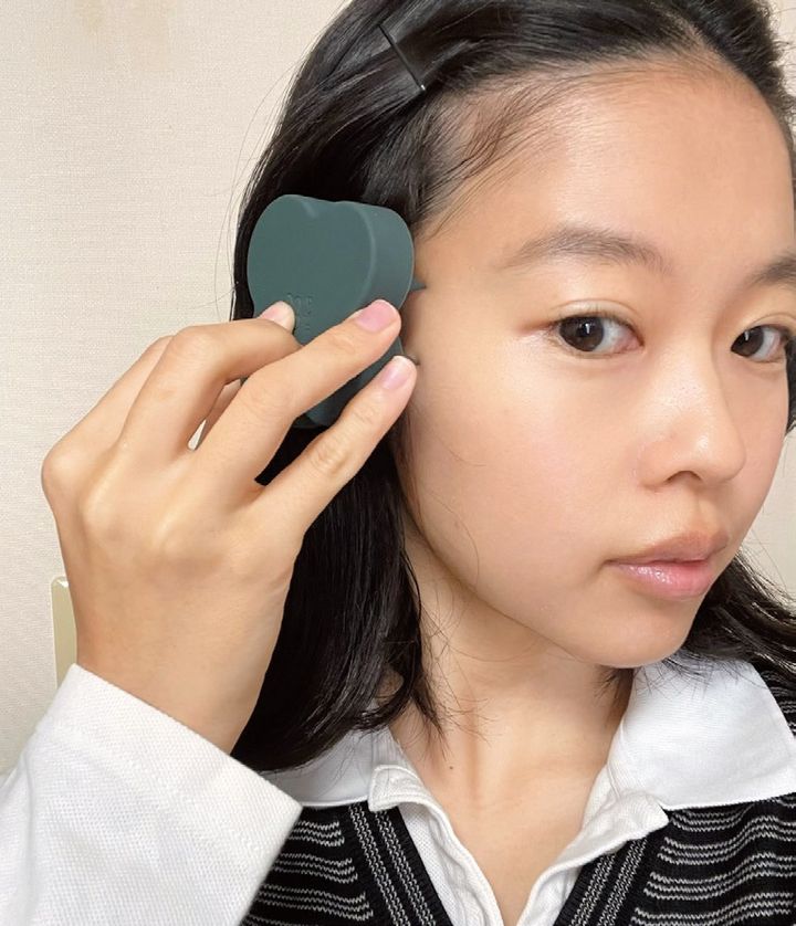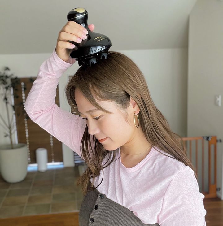 顔のたるみやむくみの原因は頭皮の凝りから。家電マッサージャーから定番のツボ押しアイテムまで、ライフスタイルに合わせて使い分けているよう。