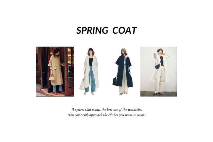 冬中スタイリングのバランスを整えてくれていたコートをシャツワンピースやロングカーデに近い、薄く軽い素材感にチェンジ。今春は鮮やかなカラーで引き締めず、ベーシックな色みでマイルドに整えるのが気分。