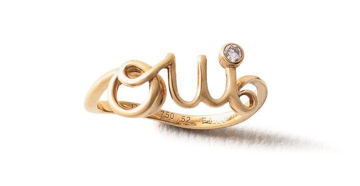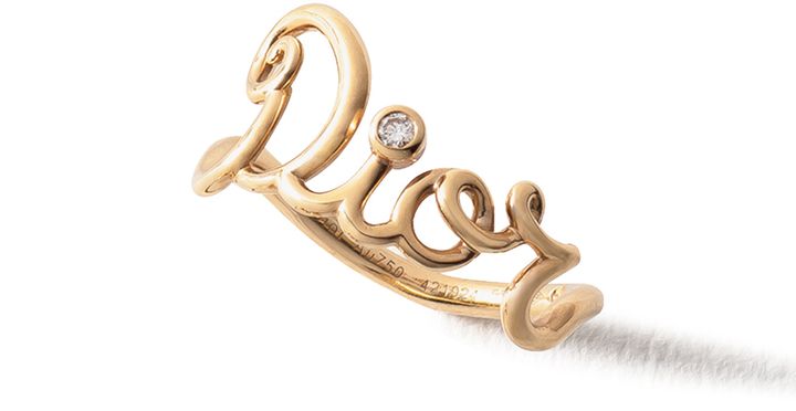 クチュールのしなやかな糸を彷彿とするゴールドの滑らかな一筆書きの流線が愛しい! 「自分の人生を肯定」「誰かの気持ちに答えるイエス」という前向きなメッセージが込められたOuiと、メゾンを頌歌したDior。意味ありジュエリーは自己肯定感の高まりもひとしお。