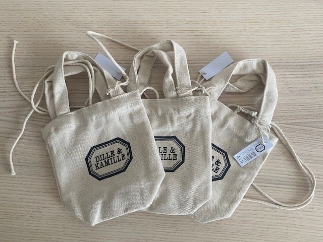 DILLE&KAMILLEでは、エコバッグの種類が豊富です。すべてリサイクルコットンで作られているため、地球に配慮したエコなところも人気のポイント。中でもおすすめなのが、ロゴ入りのミニポーチです。
