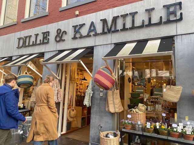 1974年にユトレヒトでオープンした「DILLE&KAMILLE」は、キッチン用品からバスグッズ、ガーデニングまで暮らしに寄り添う生活雑貨をメインにしたショップです。白と黒のモノトーンなロゴが目印で、店内にはナチュラルテイストな雑貨がところ狭しと並んでいます。