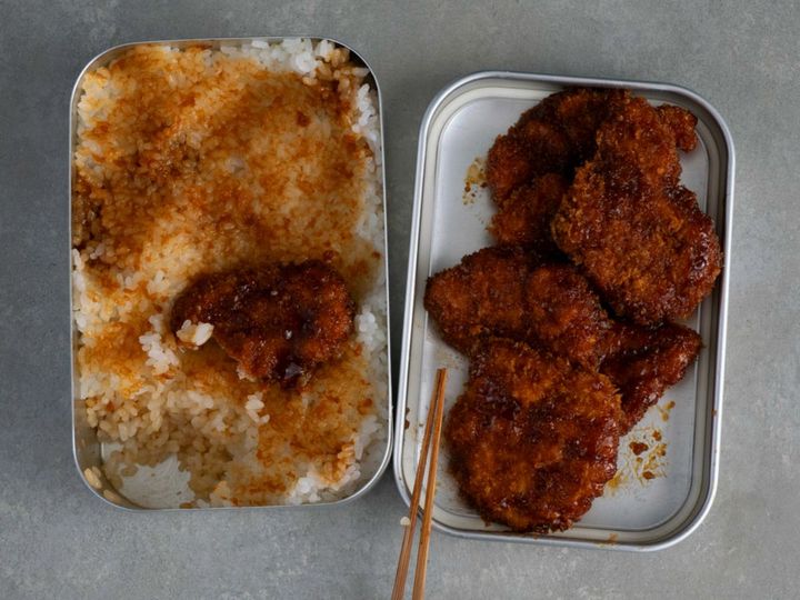 弁当箱にご飯を詰め、ソース適宜(大さじ2程度)をかける。カツにソースをたっぷりとからめ、ご飯にのせる。