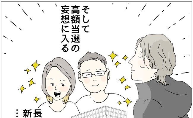 3枚、しかもバラで宝くじを買い、当たる可能性はゼロと思いながらも、売り場のスタッフさんから「どうぞ当たりますように!」という言葉をかけられ、ワクワクしてしまいます。そして、高額当選の妄想劇が始まるのでした。