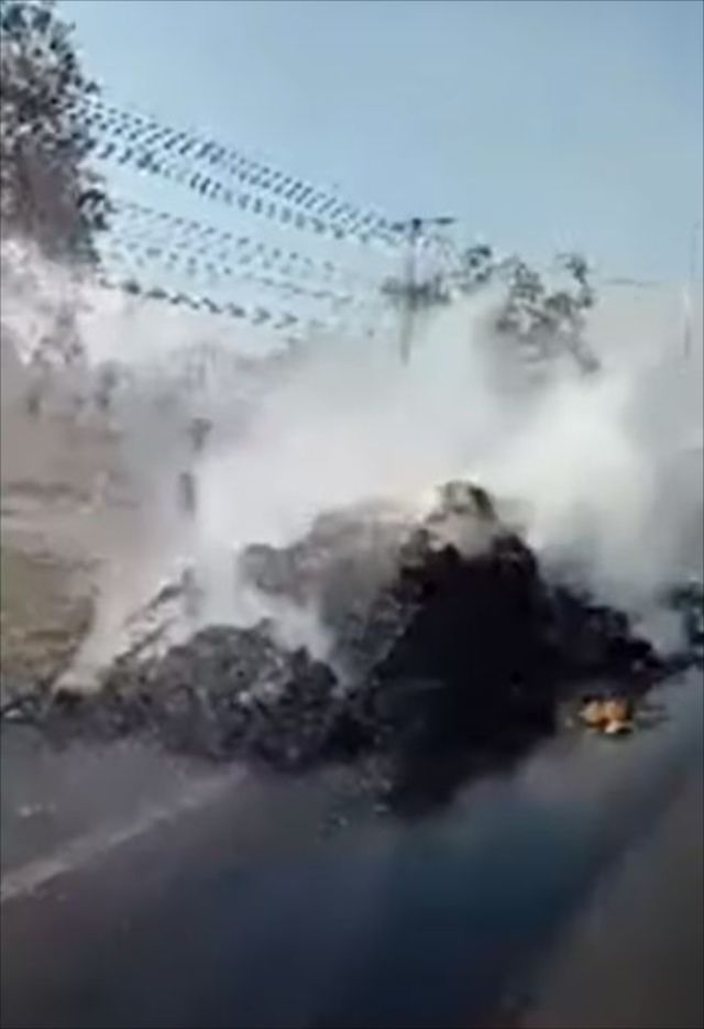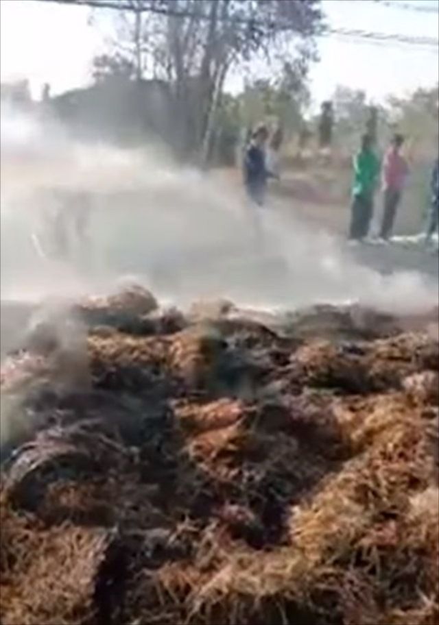 ちなみに、トラックは干し草を配達中だったとのことで、後部に積んでいた干し草が何らかの理由で発火してしまったとのこと。
