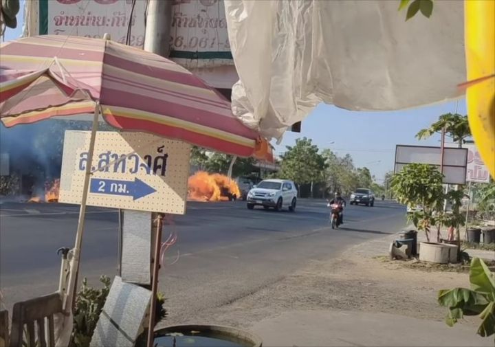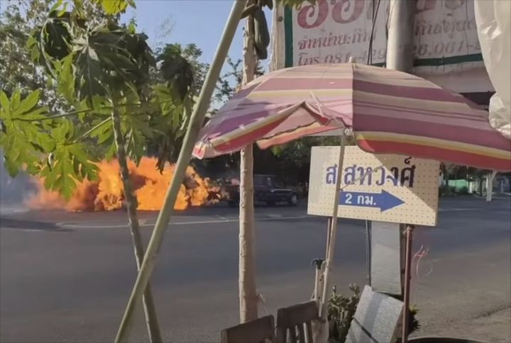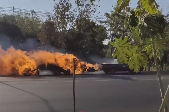 その出来事が発生したのは、タイの路上。走行中のトラックの後部(トレーラー)が、炎に包まれていました。