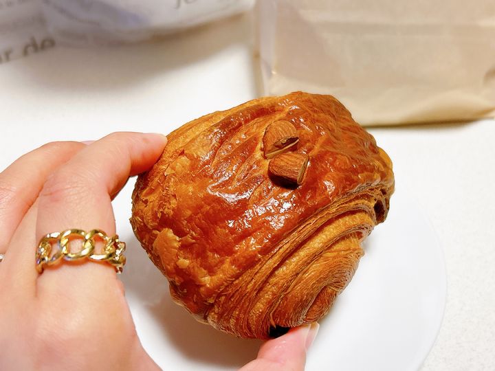 こちらのベーカリーのパン・オ・ショコラにはローストアーモンドがトッピングされています。