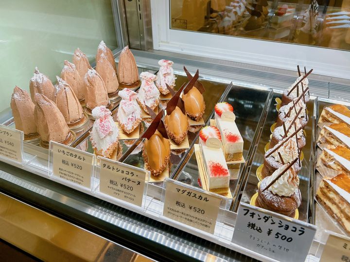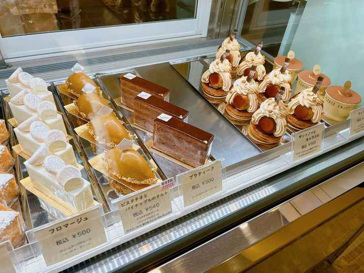 季節ごとに商品のケーキが入れ替わり、ショーケースには12種類前後のケーキが並んでいます。