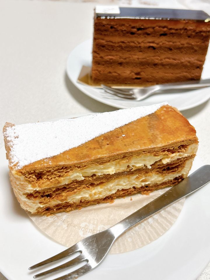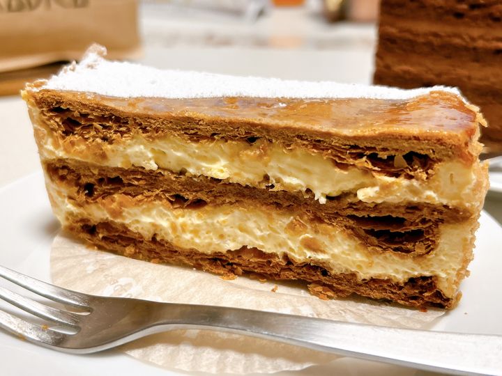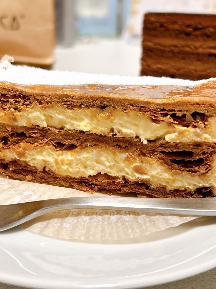 カラメリゼしたパイに、カスタードクリームをたっぷり挟んだ贅沢スイーツです。