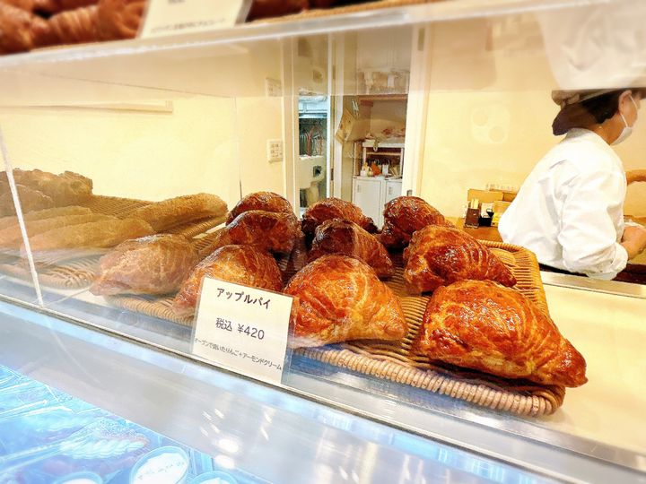 バターの香り豊かなクロワッサン、アップルパイ、さつまいもパイなど、ケーキ以外のベーカリー類も豊富なラインナップ。