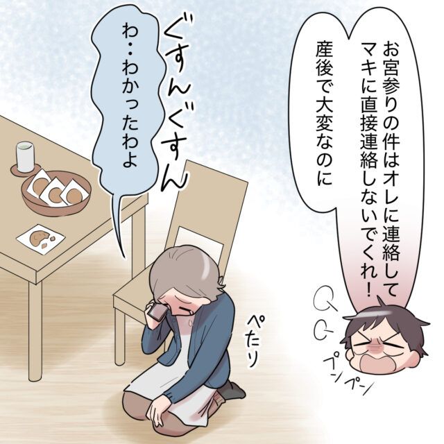 「お宮参りの件はオレに連絡して、マキに直接連絡しないでくれ!産後で大変なのに・・」