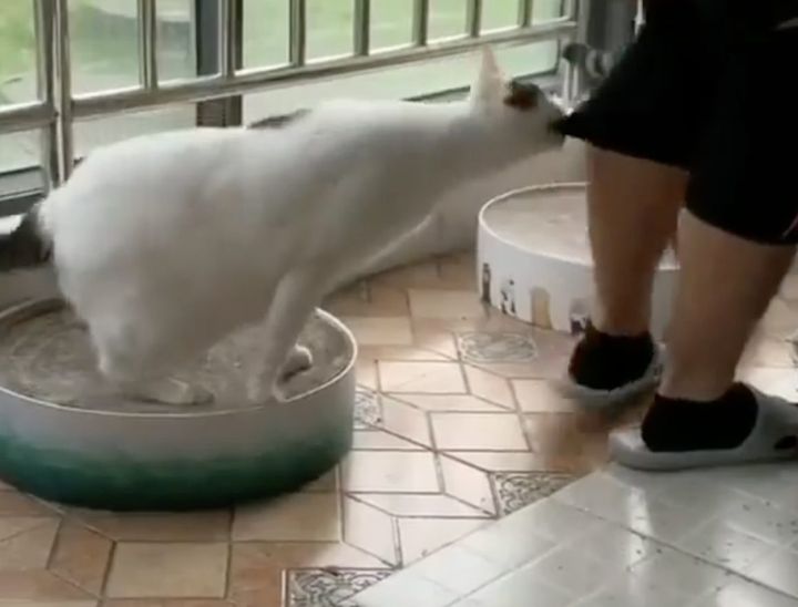猫「こっち見てよ!!」と飼い主さんの足にガブリ!